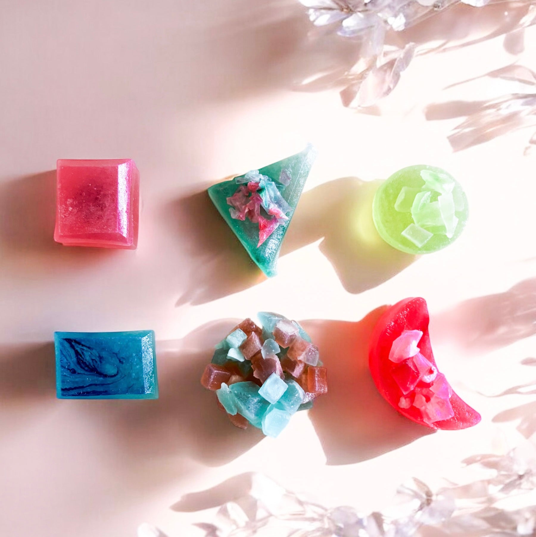 6 Crystal candy pieces flavours include Strawberry Jammie, Candied Watermelon, Pear Candy, Blueberry, Mint Chocolate Chip Cluster, Wild Cherry